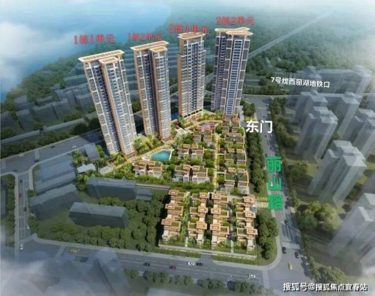 多元因素,将住宅设计成南北朝向的点式住宅,为保证西丽湖的景观视线,留出视线通廊,塔式高层住宅户户无遮挡,拉开空间视野,使最多套户型能观园望湖光山色。三梯四户比总层高32层建筑让居住更为纯粹。