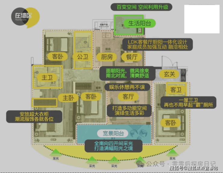 💎科学格局:南北对流,采光通透,动静分明,灵动空间随心布置