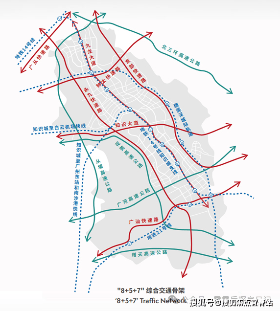 🎢花莞高速无缝接驳城芯干道,约30分钟直达珠江新城,快速通达全城规划8⃣条轨道5⃣条高速7⃣条快速路,多维立体交通,打造湾区1小时生活圈🚇8条轨道地铁14号线、地铁14号线知识城支线、地铁21号线、新白广城际线(在建)、白云机场联络线(规划中)、37号线(规划中)、广中珠澳线(规划中)、广河高铁(规划中)、有轨电车5号线(规划中)🚘 5条高速公路广河高速、花莞高速、北三环高速、从埔高速、增天高速🚗7条城市快速公路永九快速路、九佛快速路、智慧大道、知识大道、广汕快速路、广从快速路、知识城至生物岛快速路