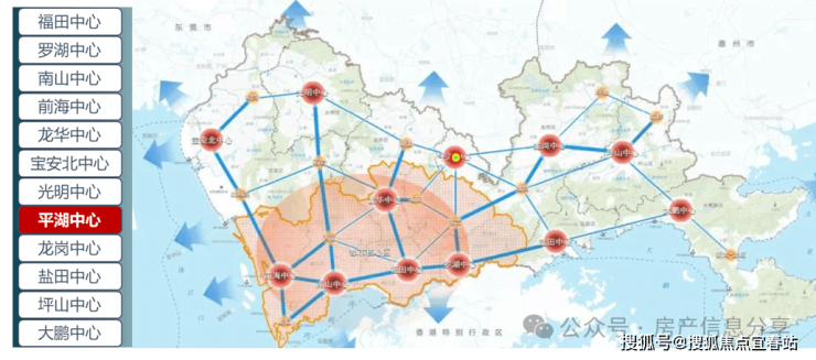 平湖中心与福田中心、南山中心等共12个城市中心将延续深圳多中心、组团式的空间结构,形成“一核多心网络化”的城市开发新格局。