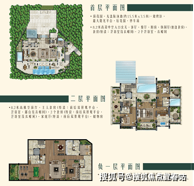 【H户型】建筑面积587.㎡;室内使用面积约710㎡;阳台赠送约50㎡;占地约850㎡4室4厅9卫;地上二层,地下一层;单层净挑高4m;入户8.2m双挑高;带有电梯预留井;超大阳光平台;超大前入户花园,自带园林水系,双车位停车入户;私家泳池花园配30㎡独立泳池,活动平台,烧烤区;步行2分钟即可到达沙滩海边。