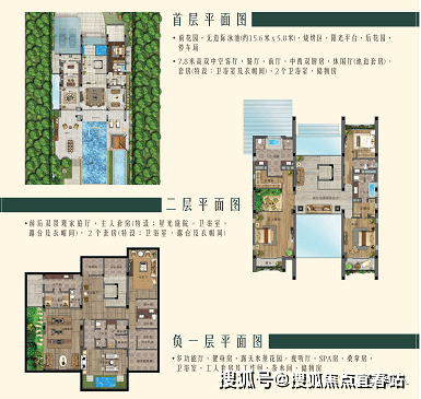 【G户型】建筑面积517.96㎡;室内使用面积约620㎡;阳台赠送约25㎡;占地约520㎡4室6厅6卫;地上三层,地下一层;单层净挑高4m;带有电梯预留井;三层超大观海阳光平台;停车双车位;私家泳池花园配30㎡独立泳池;活动平台;前后花园设有独立入户门,业主可自由出入;临近万达影城,步行2分钟即可到达沙滩海边。