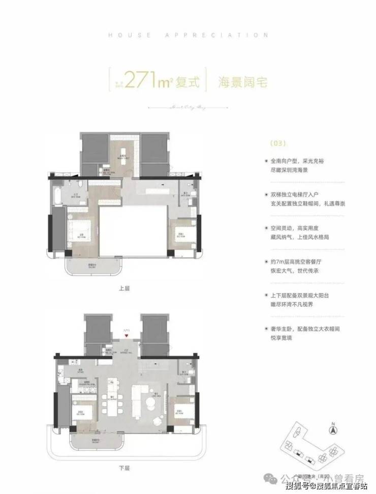 【层高】都在3m以上,大户型层高达到3.3-3.5m
