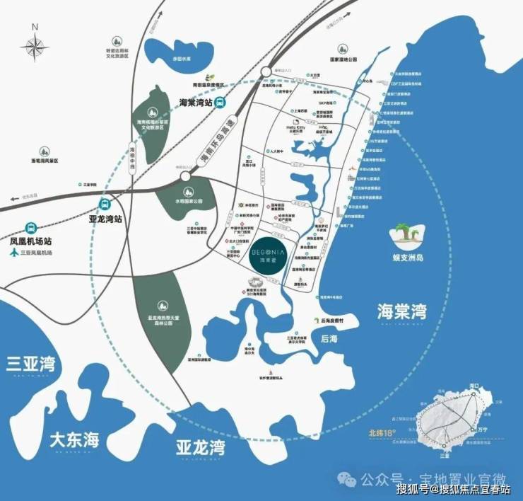 位居北纬18°黄金度假带,堪比马尔代夫、夏威夷、巴厘岛等颐养度假胜地,海岸线22公里,平均气温25℃,全年日照降雨适中,是海南岛中当之无愧的珍宝之湾。