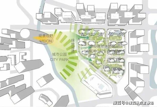 项目因地制宜,把小区西侧的城市公园视野引入社区,打造内院、外园的无界绿色视觉。