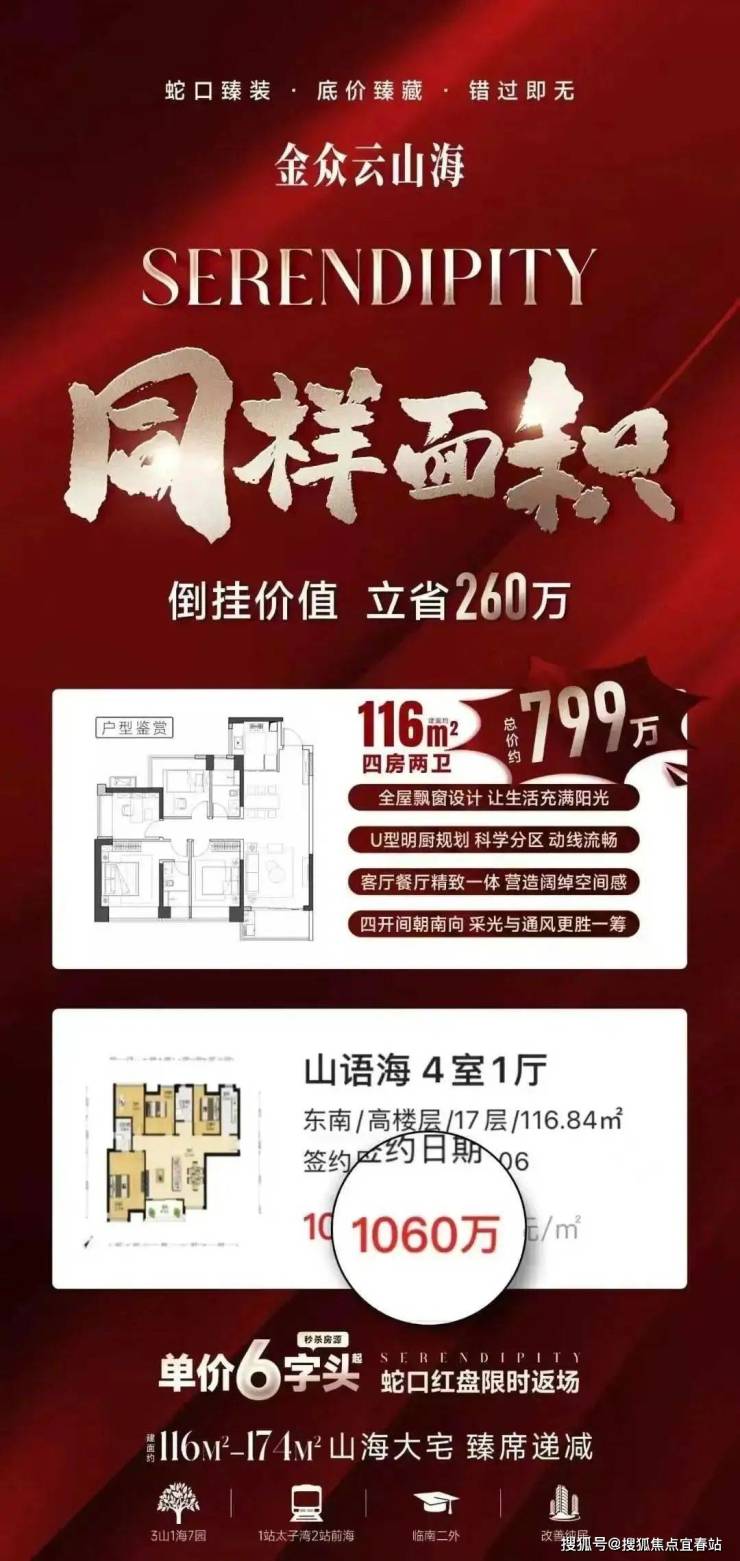最新消息:南山蛇口赤湾金众云山海公馆东西区推出最后11套特价房源,备案价85折+49.7万贴息,116㎡,叠加综合渠道+媒体返利后折后总价仅需约750万起!