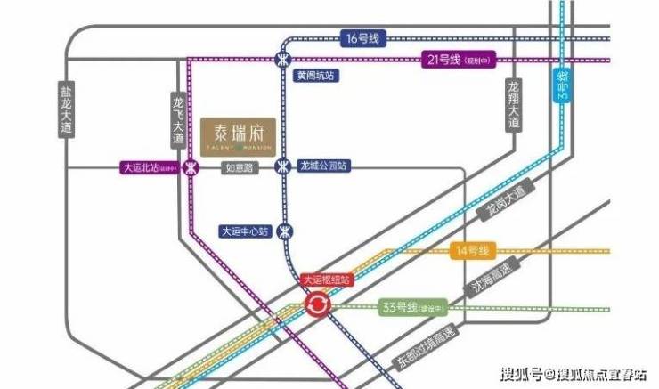 • 地铁:紧邻地铁16号线龙城公园站(约600米),2站大运枢纽。距21号线大运北站(规划中,约50米),10站南山;33号线(建设中)/深大城际(建设中)4站深圳北枢纽、5站西丽、8站前海;