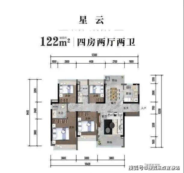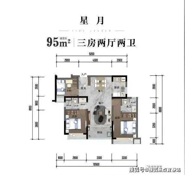 主力户型为建面约 95-122㎡的三至四房,有 95㎡“星月” 户型、96㎡“星光” 户型、105㎡“星润” 户型和 122㎡“星云” 户型等,户型方正,全明通透,多飘窗赠送,采用干湿分离、动静分离设计。