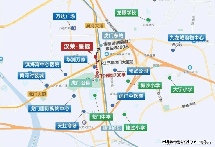 汉荣星樾项目位于东莞市虎门镇博涌社区,用地南靠虎门大道,东依滨海大道,周边交通便利,位置优越。