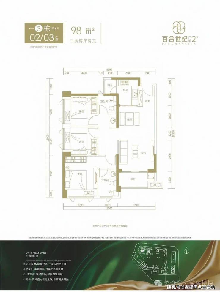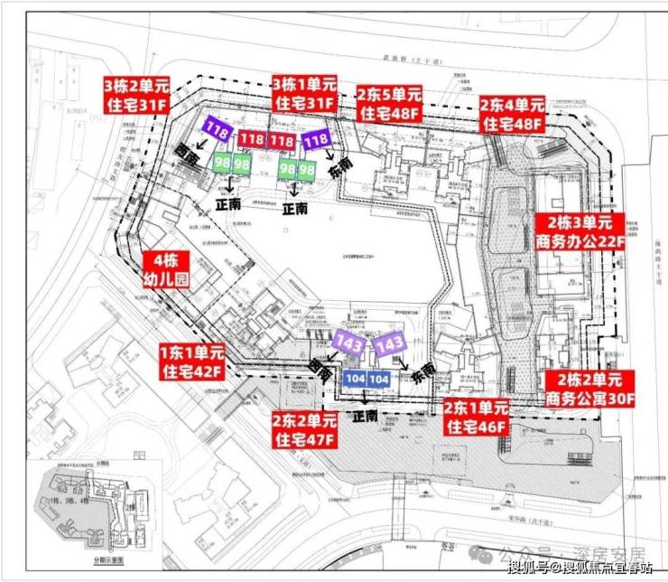 这次准备推售百合世纪广场二期(B-02地块),总占地面积约3.6万㎡,总建筑面积约27.03万㎡,计容建筑面积约19.38万㎡,容积率5.38,绿化率40%,共由3栋7个单元组成,总高是31-48层的住宅,其中1栋1单元住宅42F,1栋2单元住宅47F,2栋1单元住宅46F,2栋4/5单元住宅48F,3栋1/2单元住宅31F,另外2栋2单元公寓30F,2栋3单元商务办公楼22F,4栋是1所九班制幼儿园。