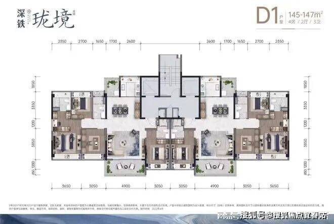 D户型 建面约145-147㎡ 4房2厅3卫