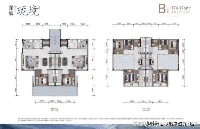 B户型 建面约174-176㎡ 4房2厅3卫