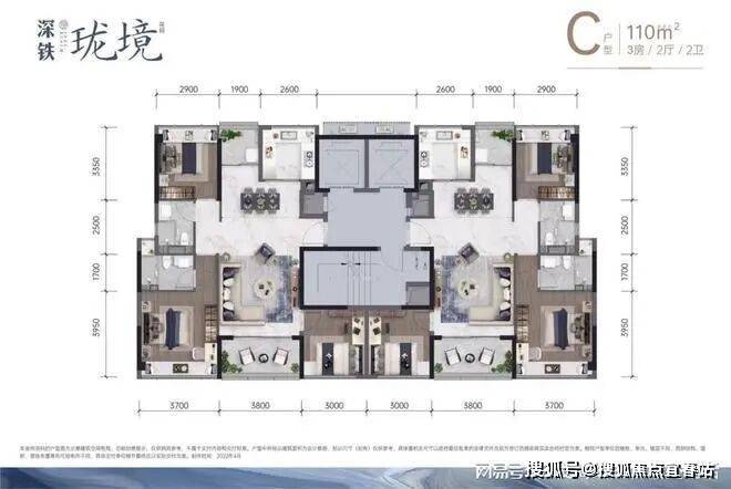 C户型 建面约110㎡ 3房2厅2卫