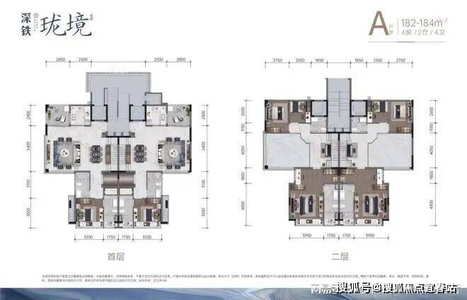 A户型 建面约182-184㎡ 4房2厅4卫