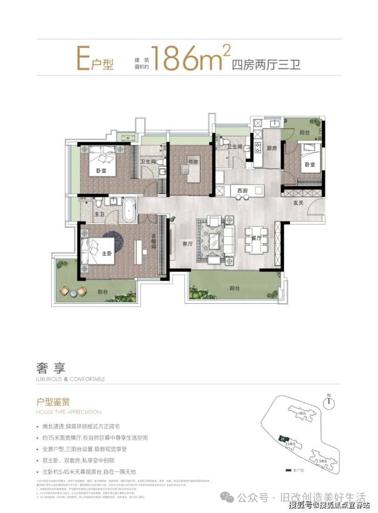 在公园景观方面,主要给了建面约153/186㎡大户型。分别位于一单元和二单元的端头位,充分享有中山公园景观资源。