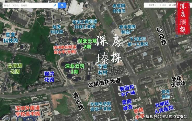 深业云筑,位于深圳市光明区公明街道马田街道石家社区,地处光明科学城大科学装置区,是粤港澳大湾区核心区域及广深科技创新走廊重要节点,承接南山区科技外溢,毗邻东莞松山湖,区位优势显著。项目紧邻地铁6号线公明广场站(1.1公里)及在建13号线公明南站(约700米),未来可直达南山科技园、后海总部基地;周边龙大、南光高速无缝衔接福田、南山,交通便捷