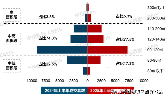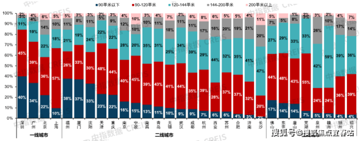 图:2025年1-6月30个代表城市各面积段住宅销售套数占比数据来源:中指数据CREIS(点击查看)市场监测:https://u.fang.com/ytcrnn/
