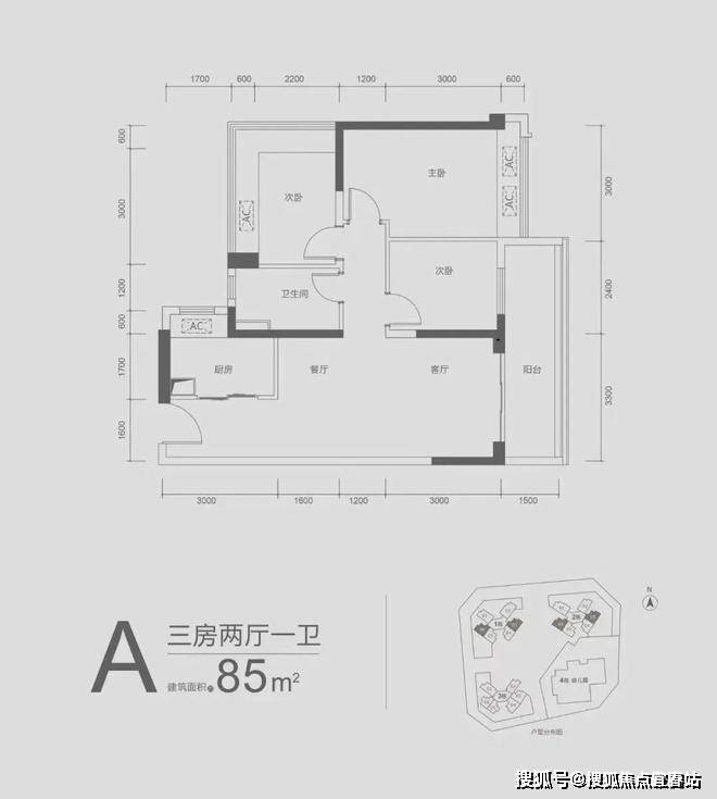 面积:84㎡3房1卫,85㎡3房 1卫,86㎡3房1卫,93㎡2房2卫114㎡4房3卫