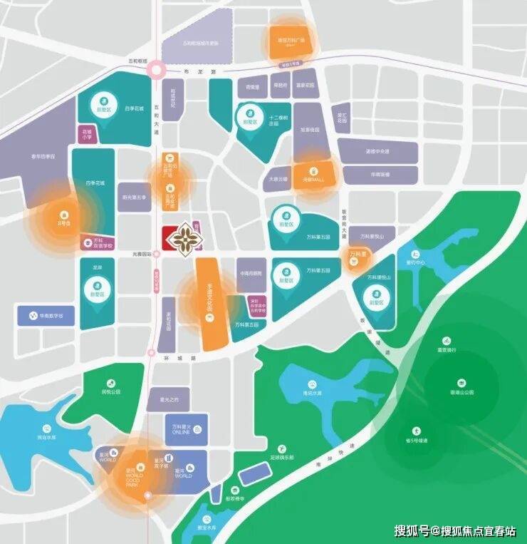 商业方面,项目自带底商,周边600米范围内有五和商业广场,8号仓奥特莱斯,约2公里范围内还有星河WORLD,星河C0C0CITY,天虹商场,畔湾MALL购物中心。
