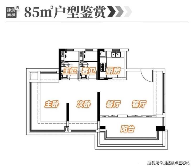 85㎡户型,客厅连接6.8米观景阳台,主卧带独立卫浴与飘窗,空间紧凑无浪费,首付仅需76万起,是天河刚需上车的优选;