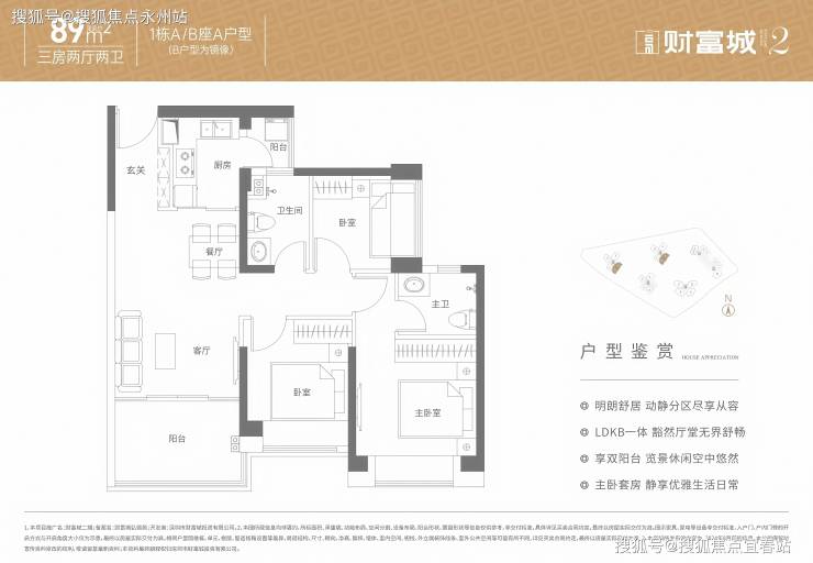 89㎡ 3 房 2 厅 2 卫(经典竖厅)