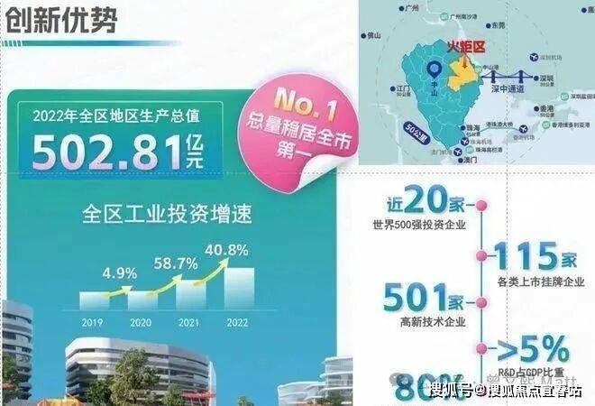 全国3大火炬字型大小高新区之一,近20个国家级金字招牌约3KM内上市企业115家,超20家世界500强企业聚集,像纬创科技、明阳智慧、佳能、卡西欧等,聚集了大量的高新技术人才。2022年GDP达502.81亿元,多年蝉联中山首位