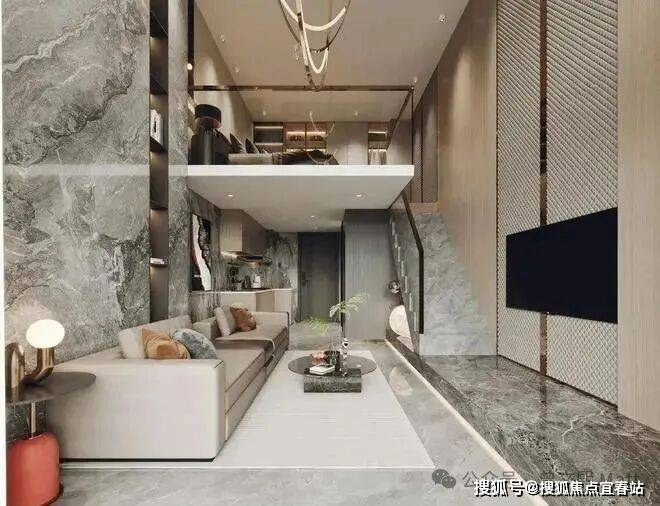 (6) 优越产品:D户型:约40㎡loft中空设计,享繁华生活约4.5米中空层高,超开阔视觉客厅,小别墅既视感,买一层送一层、约3.6米景观阳台,奢阔挑高全优通风