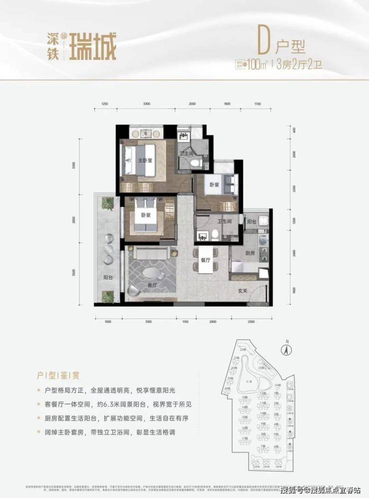 深铁瑞城,总占地面积约18.9万㎡,总建筑面积约64万㎡,计容建筑面积约57.7万㎡,容积率3.06,绿化率25%,项目共分3期开发,总规划4770户(其中商品房2770套,人才房606套,保障房1394套),停车位3202个(占比1:0.67)。