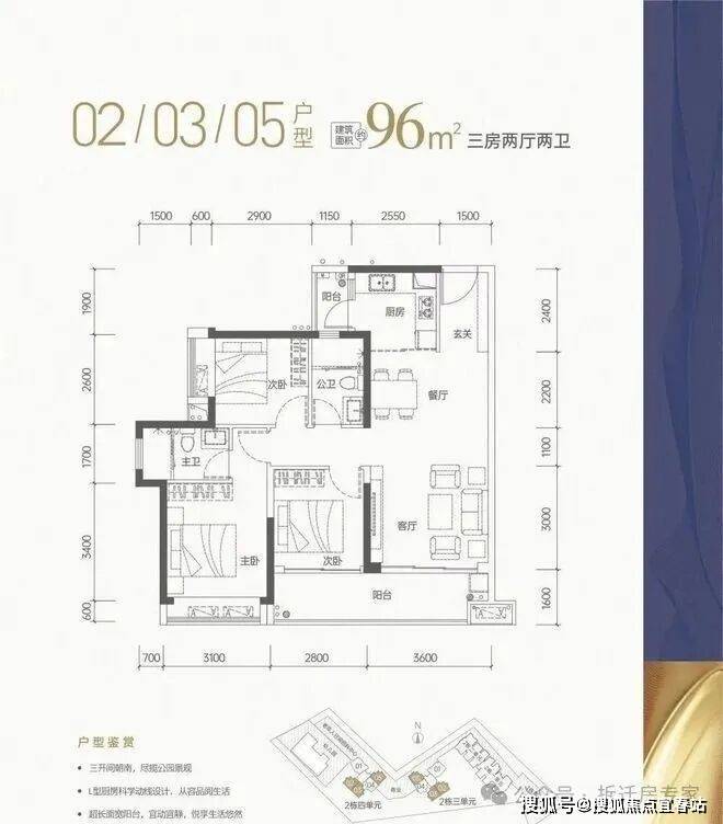 约96㎡的3房2卫:
