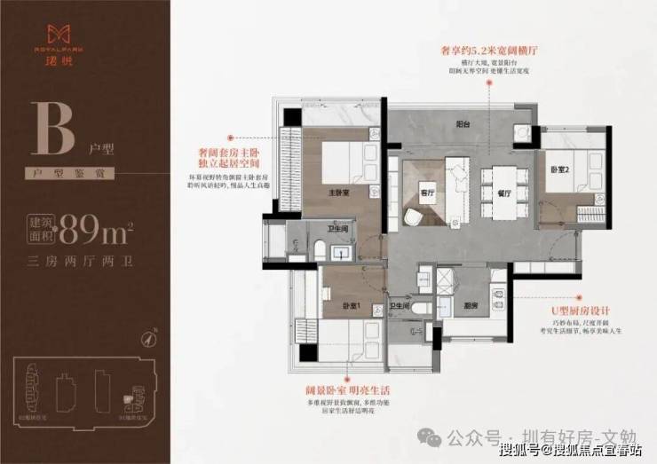 B户型西北向仅29套,大横厅户型,5.2的客厅开间,双龙抱珠户型,使用率98%