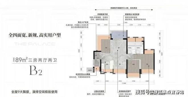 推出项目1栋1单元,2T5户,89㎡竖厅三房两卫,南北通透,带1.8m宽阳台;112㎡四房两卫。户型图和平面图已发布。异地美学创意空间(样板房)已开放。