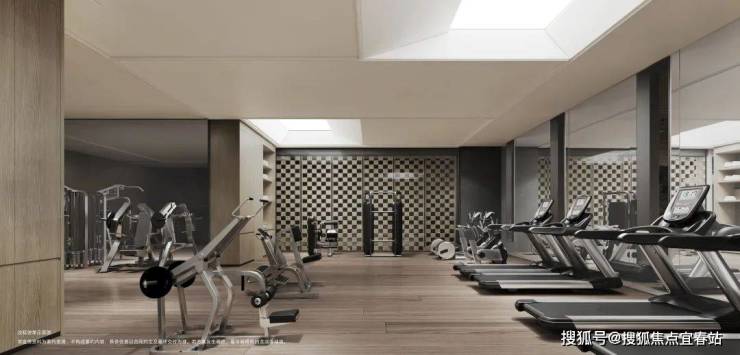 健身房设计独具创意,采光主要来自湖光水院的自然天光,再配置恒温恒湿新风系统,激爽体验感倍增。
