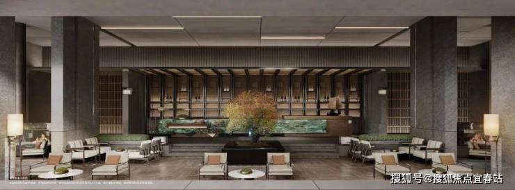 行政酒廊采用下沉式设计,复刻自西溪安达仕酒店,面朝灵秀水院,格调非同一般。此部分目前将会作为售楼部接待区呈现,后期会调整为会所的行政酒廊,可提前享受会所质感服务。