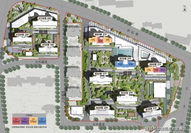 龙湖御湖境分为A、B两个地块,由10栋18-31层的高层住宅组成,总建面约15.5万方,体量适中。预计首推B地块,总建面约12.7万方,容积率只有约2.96。首开楼栋为B6、B7、B8号楼,北侧临亲水会所和洪达巷。