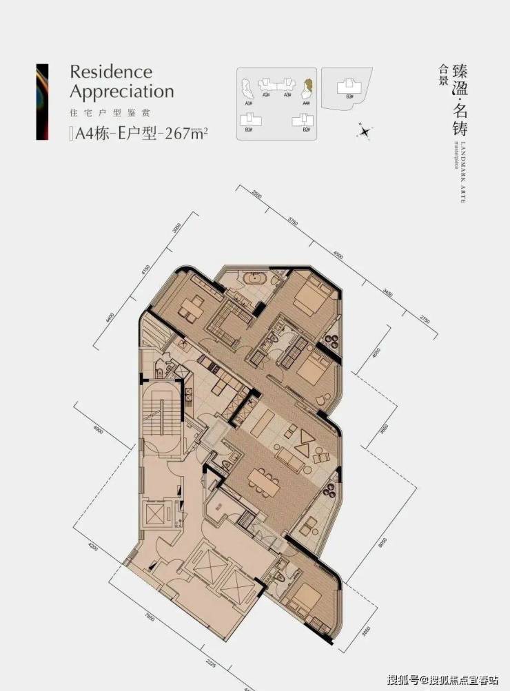 约267平四房,这款户型不是常规的方正户型,在格局上比较独特,做到三个卧室都能南向望一线江景。