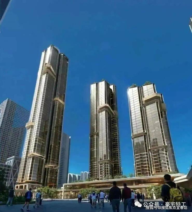 项目规划5栋超高层住宅,采用全玻璃幕墙设计,实用率超95%,主力户型为209㎡以上大平层。项目以“第四代住宅”标准打造,配备空中连廊、星空会所、架空泳池等共享空间,并融入垂直绿化体系