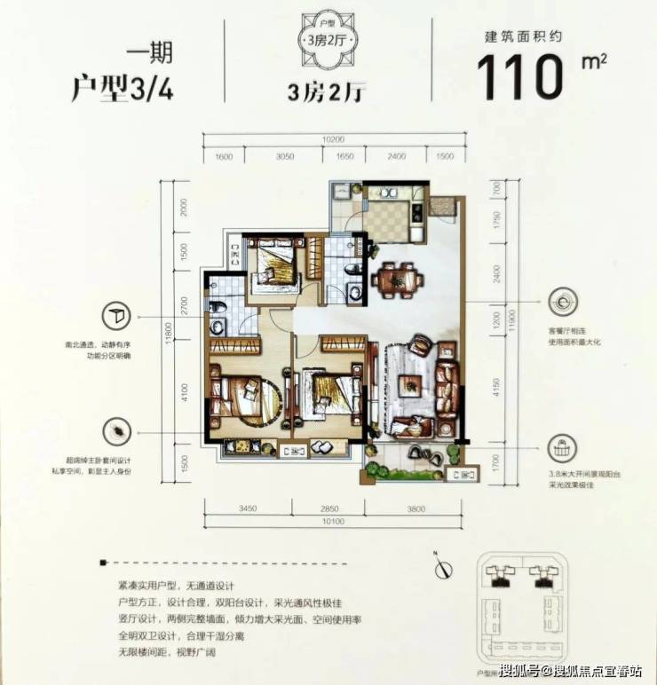 建面110㎡的三房对应的是3户型和4户型,属于紧凑实用户型,三房保证了相对充足的居住空间。