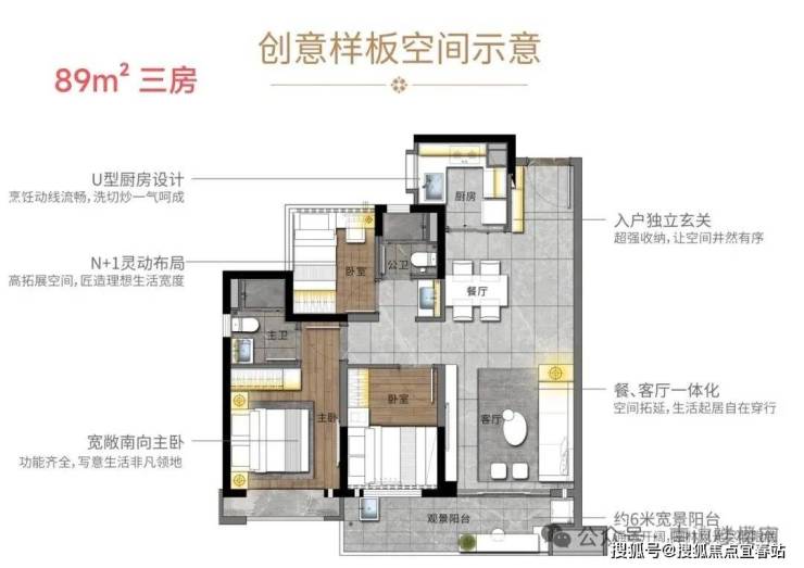 89㎡三房两卫:独立玄关、U型厨房、双卫设计,小户型也能兼顾舒适与功能