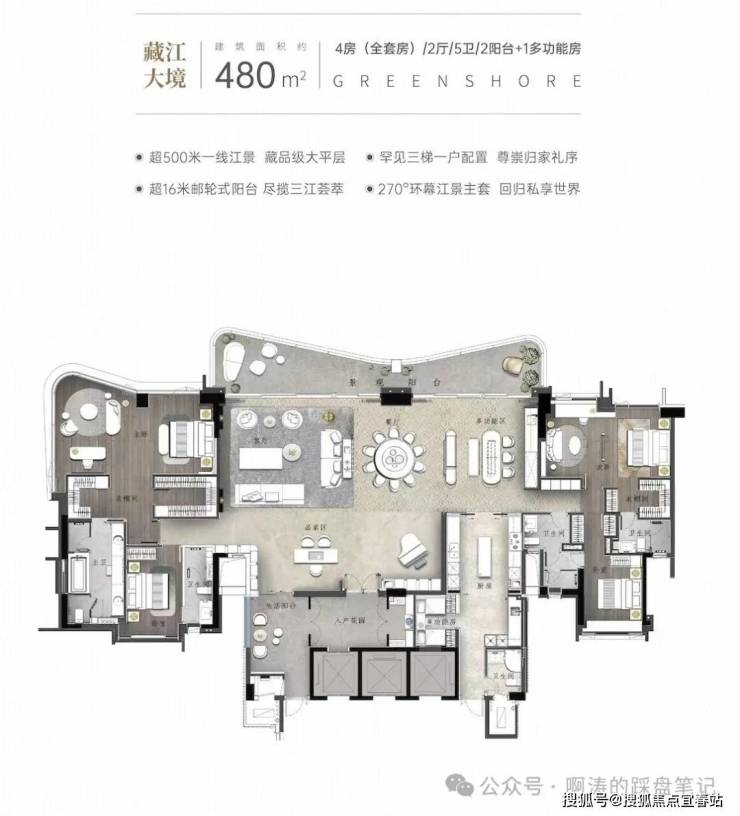 ②超 500 米一线江景,全市稀缺藏品级住宅大平层;