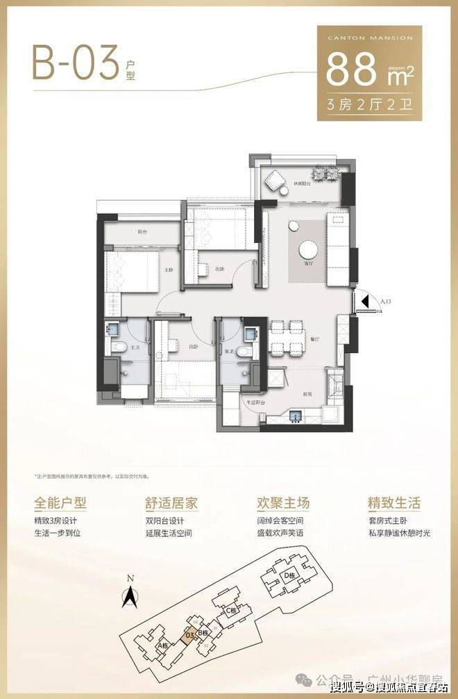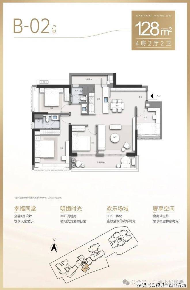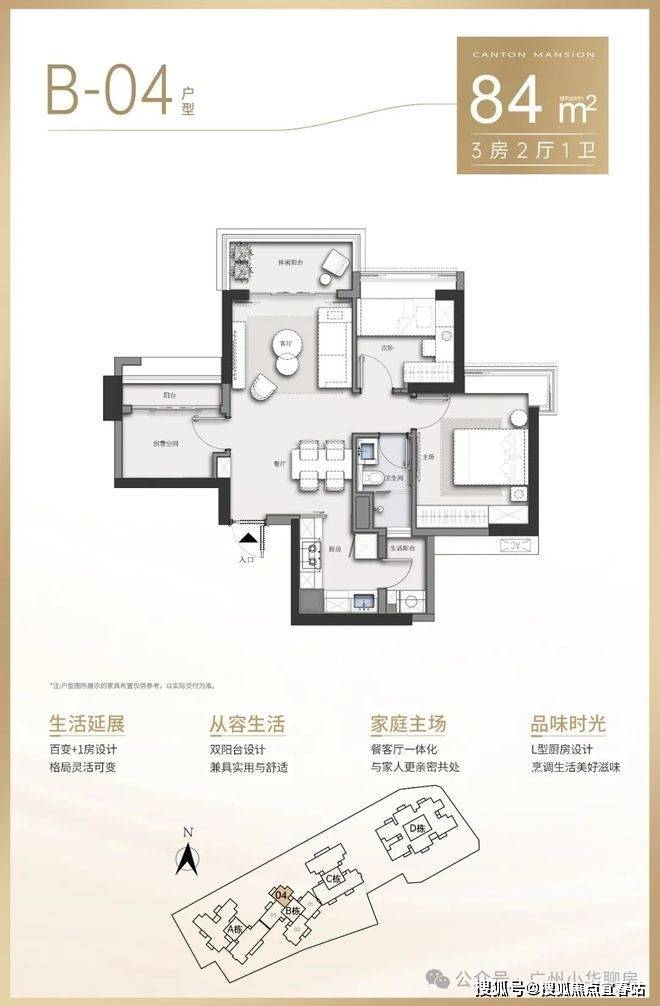 B栋产品:约84-128㎡三房至四房,三梯四户