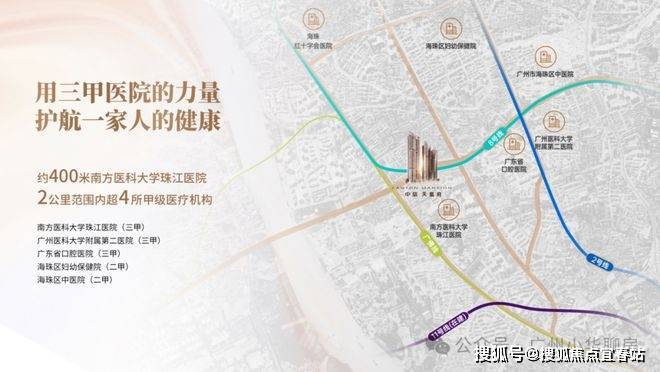 500米步行南方医科大学珠江医院,广州医科大学附属第二医院、广州市红十字会医院等多家三甲医院保驾护航。