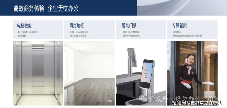深铁置业大厦,不辜负绝佳位置,前沿设计理念,于标准层打造双层大堂,为总部企业及高要求企业专属定制。双首层空间,全面提升企业的形象展示诉求,便于企业打造品质接待空间,企业实力一览无余。