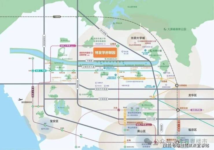 项目直线距离13号线高新技术人才专线首站公明北站(在建)约200米,未来搭乘该线可直达南山科技园、后海;南光、龙大双高速环绕,自驾速抵南山、福田、龙华核心。