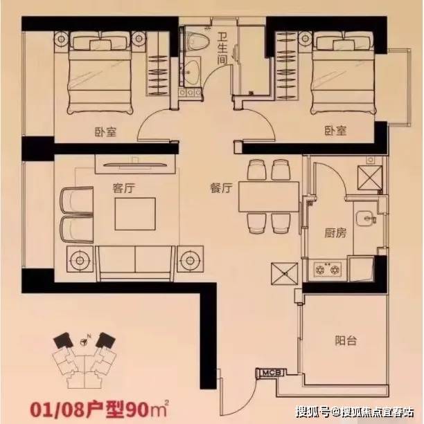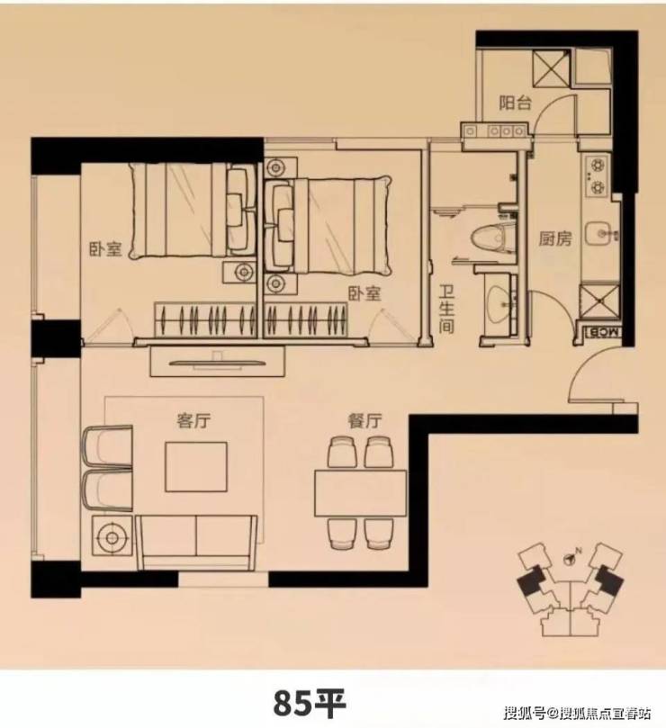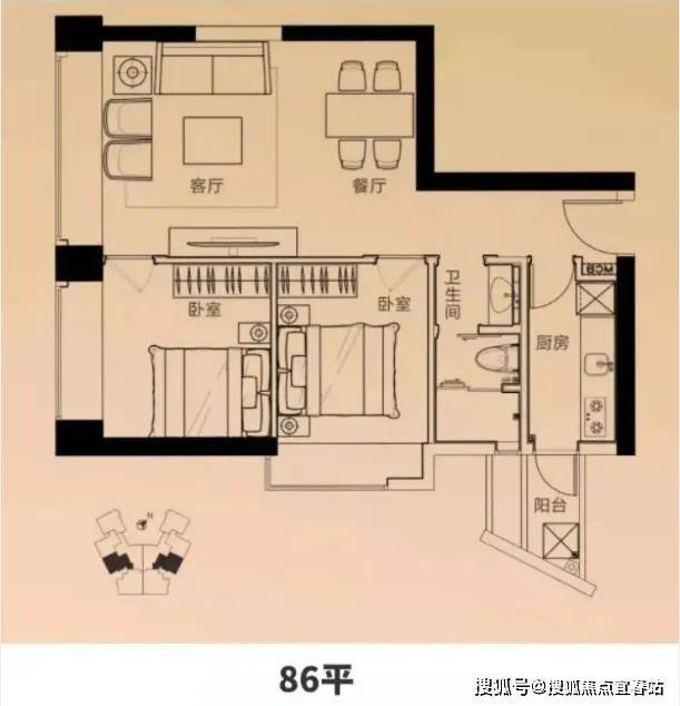 建面约86平大两房,南向阳台,阳光主卧,客餐直联,南北通透,空间感好,功能性强,居住体验非常舒适