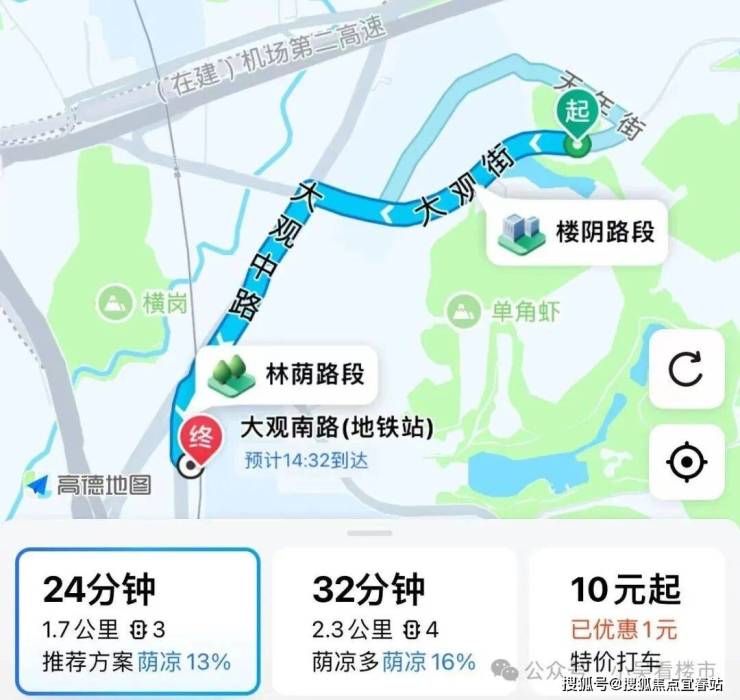 项目距离地铁比较远,步行去最近的21号线大观南路站都要1.7公里左右,需要走20多分钟,对于依赖地铁上下班的刚需客群不是很友好。