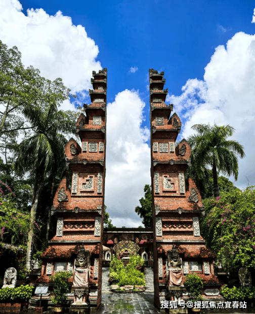 在东南亚风情园林中,融入椰子树、霸王棕、银海枣、火山石等海南当地特色自然元素,让海南的火山群地貌与热带雨林生态,真正地走进日常生活环境中。