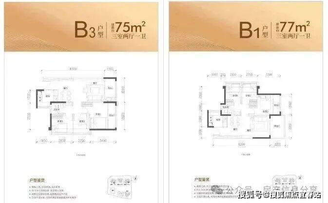 • 75-77㎡ 3房2厅1卫|刚需大三房,东南朝向看园林,小面积实现3房梦想。