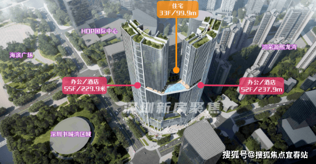 项目规划总建筑面积约12.4万㎡,其中住宅仅约2万㎡(2栋,包含2000㎡建只租不售的人才房),约5.2万㎡的办公,约4.7万㎡酒店和5000㎡商业。容积率≤8.5,机动车位650个。其中住宅限高99.9米,33层。