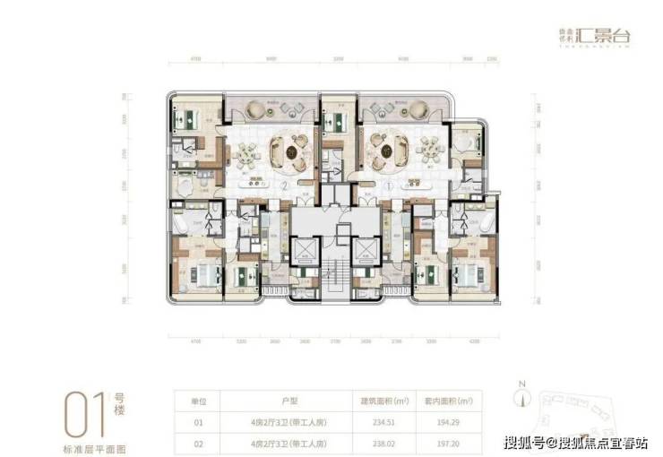 项目由14栋12层小高层组成,产品涵盖123-352㎡三至五房,共8类户型,户型实用率约82-84%
