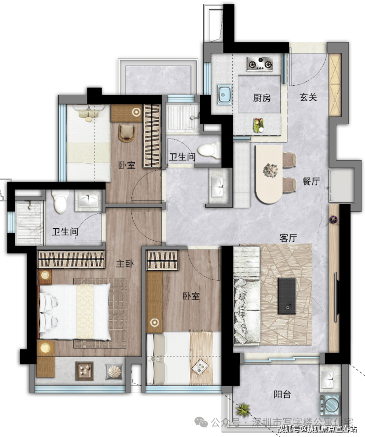 【建面86㎡3居】360-385万,3室2厅2卫, 东南·西南朝向,楼栋分布于2栋一单元/2栋二单元